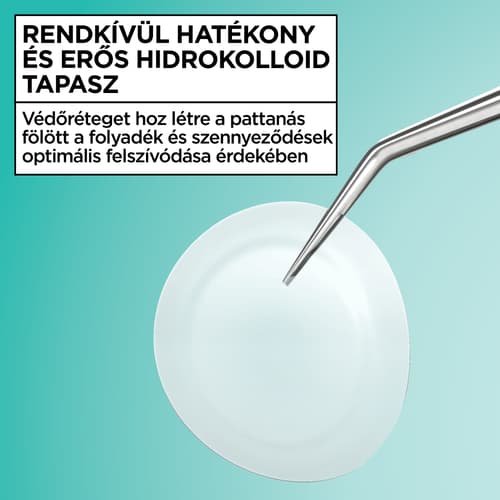 Szabadulj meg a nagy, érett pattanásoktól gyorsan és célzottan! Ez az extra erős, 420 mikron vastag hidrokolloidos tapasz védőréteget képez a pattanás felett, felszívja a nedvességet és a szennyeződéseket, így akár 8 óra alatt láthatóan laposítja a pattanásokat.