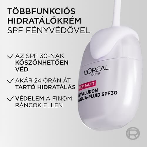 L'Oréal Paris Revitalift Filler SunPod Aqua Fluid hialuronsavval és SPF 30 fényvédővel, 40ml