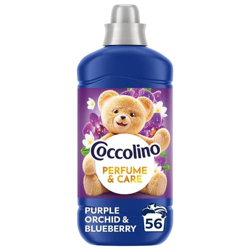 Coccolino Perfume & Care Purple Orchid & Blueberry fabric softener, with purple orchid and blueberry fragrance notes, gives clothes a fresh feel. 1288 ml pack, enough for 56 washes.