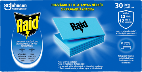 EU,Raid Illatmentes Szúnyogirtó Lapkás Utántöltő – Éjszakák szúnyogok nélkül