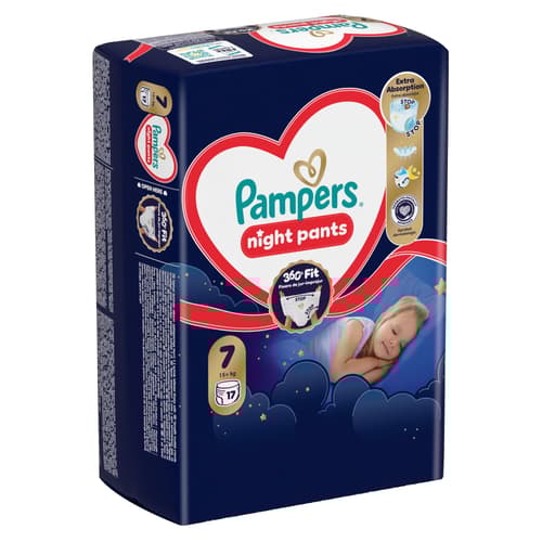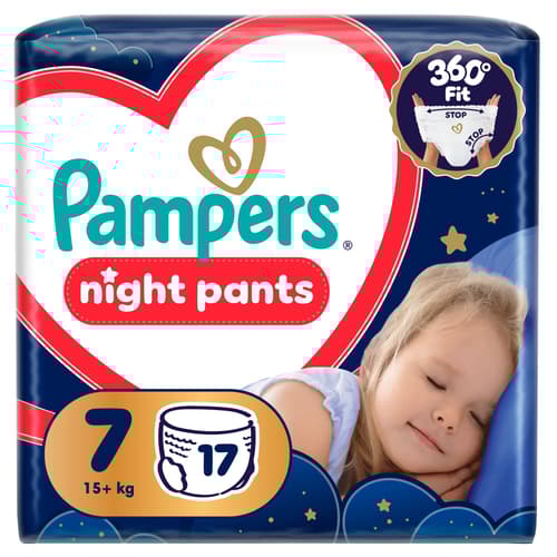A Pampers legkiválóbb éjszakai védelme a Pampers Night nadrágpelenkával: szupererős nedvszívó magjának köszönhetően a Pampers legjobb nedvszívó képességű terméke, az akár 100%-ban szivárgásmentes éjszakákért. A 360°-os derékrész rugalmasan igazodik a kisbaba éjszakai mozdulataihoz, a Stop & Protect kakitasi pedig segít megelőzni a hátoldali szivárgást. Az összes többi Pampers bugyipelenkához hasonlóan a Pampers Night nadrágpelenkát is könnyű cserélni, még akkor is, ha közben kisbabád izeg-mozog. Egyetlen mozdulattal felhúzható, feltéphető oldalainak köszönhetően könnyen levehető, és összetekerve, a ragasztószalaggal rögzítve könnyen kidobható. Hozzád hasonlóan a Pampers számára is a kisbabád biztonsága a legfontosabb: