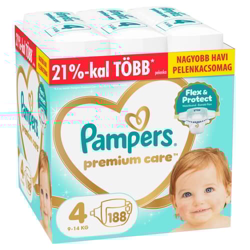 Lengyelország,Pampers Premium Care Pelenka, Havi Pelenkacsomag, Méret: 4 (9-14 kg) 188 db