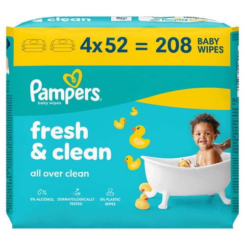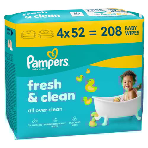 Pampers Fresh Clean Baby Nedves Törlőkendő, 4x52 db, 208 db