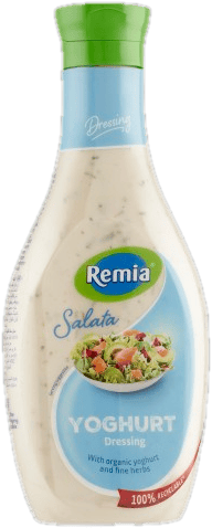 A Remia yoghurtos salátaöntet joghurtos jellegű ízvilágot ad a friss salátáknak és zöldséges tálaknak. Hidegen használható, gyorsan adagolható öntet a mindennapi ételekhez.