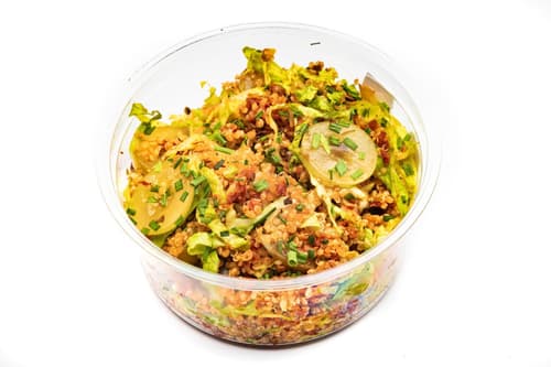 Magyarország,A laza szemű quinoa alapot intenzív ízű aszalt paradicsom gazdagítja, amit roppanós római saláta és friss snidling tesz üdévé. A lédús fehér szőlő finom, természetes édességgel egyensúlyozza a sós jegyeket, így minden falat harmonikus és izgalmas marad. Gluténmentes, vegán, könnyen emészthető, mégis laktató. Ideális választás gyors ebédhez, könnyű vacsorához vagy akár egy tudatosabb brunch opcióként.
