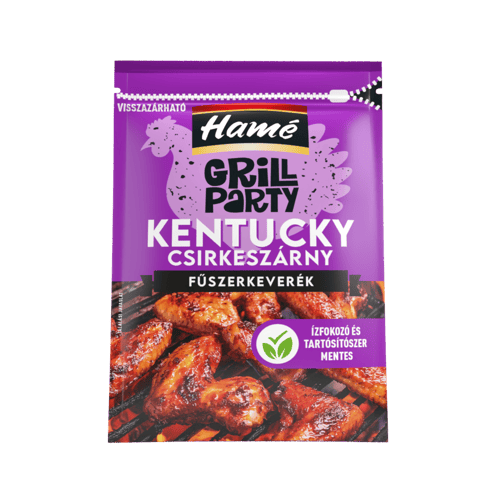 A Hamé Grill Kentucky csirkeszárnyak fűszerkeverék a grill- és sütőételek ízesítésére készült. Kifejezetten csirkeszárnyakhoz, de más húsételekhez is használható.