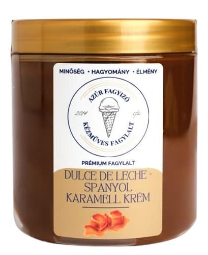Az Azúr Fagyizó világában a fagylaltkészítés valódi művészet: ez a dulce de leche jellegű karamellkrém is ezt az élményt hozza el az otthoni tálalásba. Gazdag, mély karamellíze remekül kiemeli a tejszínes, vaníliás és kávés desszerteket, miközben krémes textúrája szépen terül és jól rétegezhető. Használja pohárkrémekhez, palacsintához, gofrihoz, sütemények töltelékének, vagy csorgassa frissen adagolt fagylaltra – egy kanálnyi is különleges, „fagyizós” befejezést ad. Az Azúr szemléletében a hagyomány és az újító ízpárosítások találkoznak, hogy minden falat emlékezetes legyen.