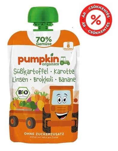 Pumpkin Organics Bio Édesburgonya sárgarépa lencse brokkoli banán 8 hó+ (70%)