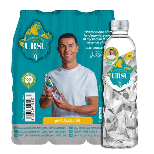 Az Ursu9 Cristiano Ronaldo természetesen lúgos ásványvíz pH 9 értékkel és kellemes ízzel. Védett forrásból származik Spanyolország egyik hegyvidéki régiójából. Alkoholtartalom: 0.