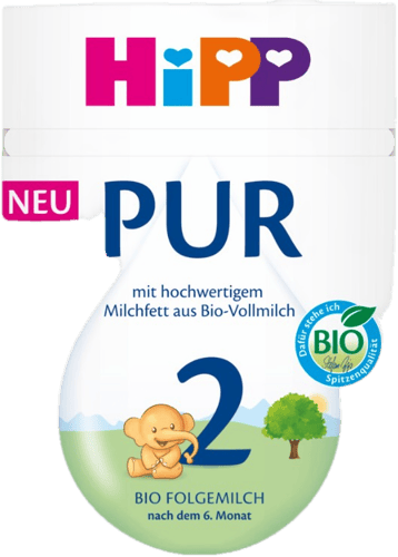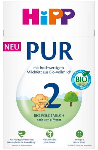 Németország,A HiPP 2 PUR BIO anyatej-kiegészítő tápszer 6 hónapos kortól adható, az életkornak megfelelő vegyes étrend részeként. Bio teljes tejből készül, és pálmaolajat nem tartalmaz.