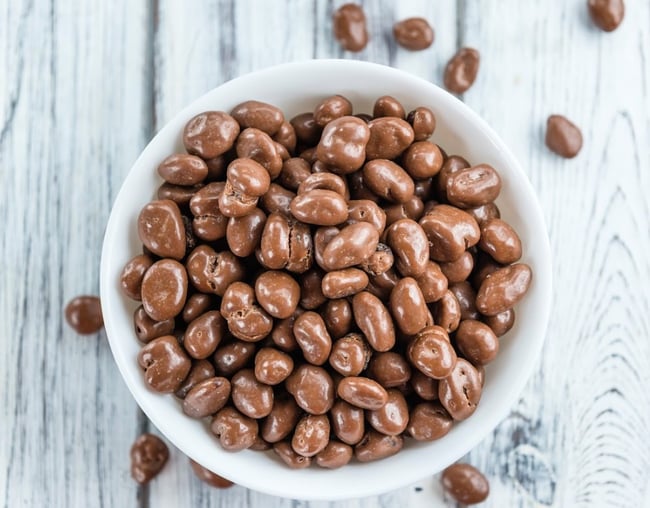 Mazsola 55% (mazsola 99%, napraforgóolaj), tejcsokoládé 44% [cukor, kakaóvaj*, tejpor, savópor, kakaómassza*, emulgeálószer: lecitinek (szóját tartalmaz), aroma], fényező keverék [glükózszirup, fényezőanyagok (gumiarábikum, sellak), kókuszsír, repceolaj, dextrin]. A kakaó szárazanyag-tartalma a tejcsokoládéban legalább 31%. *Rainforest Alliance tanúsított. A termék tartalmazhat földimogyorót, dióféléket és szezámmagot.
