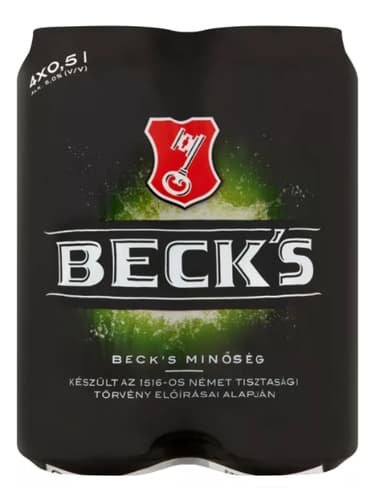 A Beck's egy prémium minőségű, német stílusú magyar lager sör, melyet a német tisztasági törvény szerint, négy természetes összetevőből főznek. Kellemesen keserű, tiszta karakterű, 5% alkoholtartalommal. Kiválóan passzol egyszerű ételekhez, mint hamburgerek, sós rágcsálnivalók vagy grillezett fogások. 4x0,5 literes dobozos, visszaváltható kiszerelésben kapható. Fogyasztása 18 éven felülieknek ajánlott.