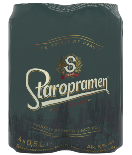 A Staropramen dobozos sör kellemesen bársonyos, lágyan malátás aromával és finoman kesernyés lecsengéssel. Alkoholtartalom: 5% vol.