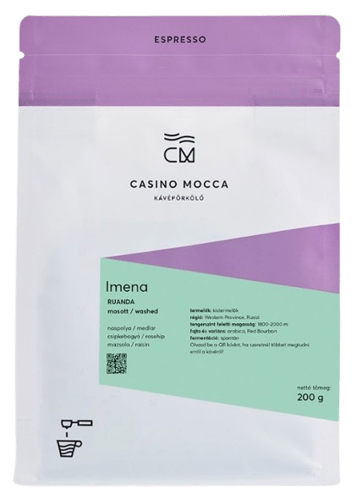 Experience Casino Mocca's Imena espresso, a specialty whole bean coffee freshly roasted in Hungary. These Arabica Red Bourbon beans are sourced from Rwandan smallholders, grown at 1800-2000m, and processed with washed, spontaneous fermentation. Enjoy its distinct flavour notes of medlar, rosehip, and raisin. This 200g pack is perfect for a rich espresso, delicious on its own or with milk, bringing you the quality of a leading new-wave roaster.
