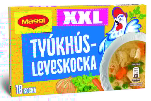 A MAGGI Tyúkhúsleveskocka arany színt és telt, csirkés ízvilágot ad a leveseknek és egyéb ételeknek. Levesek, főzelékek, húsételek és köretek ízesítéséhez is használható.