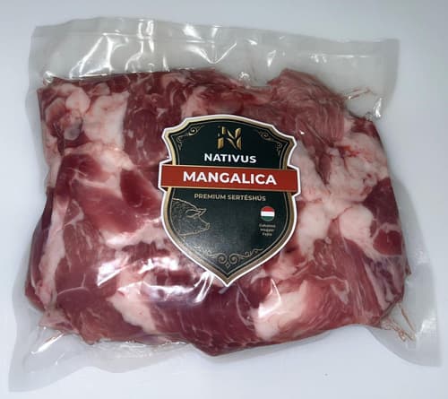 A Nativus Mangalica sertés prémium kocka (comb-lapocka) előhűtött, darabolt hús, amely praktikus formában hozza el a mangalica jellegzetesen gazdag ízvilágát. Ideális alapanyag lassú, szaftosra készített fogásokhoz.