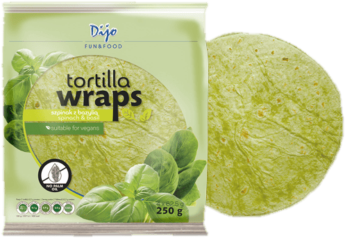 Lengyelország,A Dijo spenótos, bazsalikomos tortilla (4 db) praktikus alap gyors szendvicsekhez és wrapekhez. Alkoholtartalom: 0%.