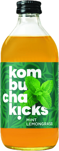 Kombucha Kicks – fermentált zöld tea alapú ital élőflórával, Menta és Citromfű ízesítésben, BIO összetevőkből