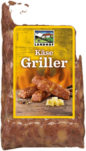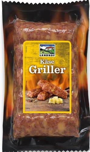 Ausztria,A LANDHOF sajtos griller fűszerezett, elősütött grillkolbász, amely sütésre készen érkezik. A sajtot közvetlenül a kolbászhúsba dolgozzák, a termék pedig bél nélkül készül, ezért határozottabb állagú.