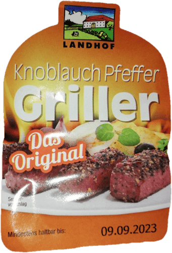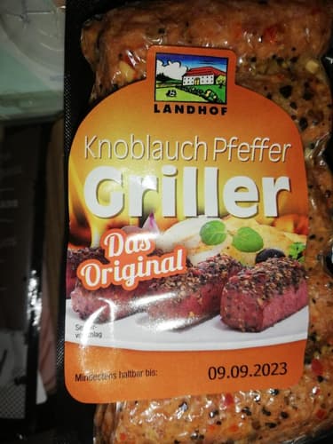 Ausztria,A LANDHOF fokhagymás-borsos griller fűszeres, karakteres ízvilágú grillkolbász. Serpenyőben, sütőben vagy grillen készíthető.