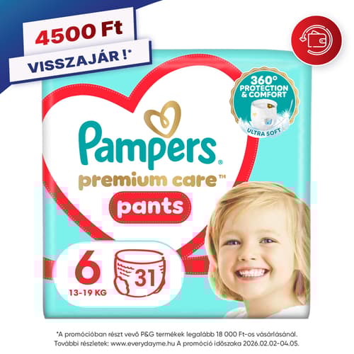 Pampers Premium Care Pants Bugyipelenka, Méret: 6 (13-19 kg) 31 db