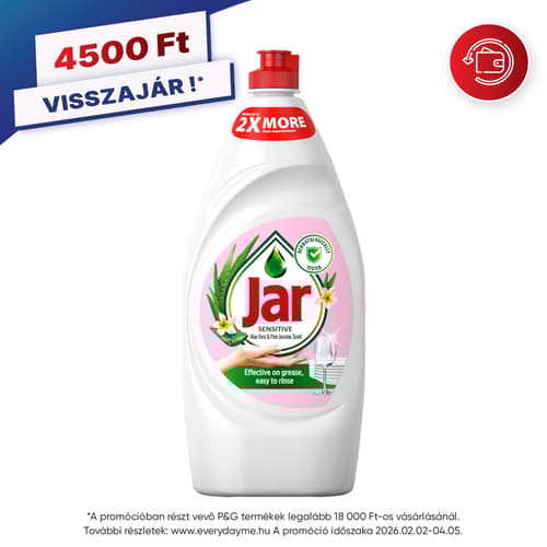 - A Jar intenzív formulája elbánik a zsíros szennyeződésekkel, mindent tisztává varázsol és leegyszerűsíti a mosogatást
