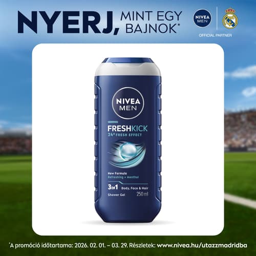 Nivea Men Cool Kick Tusfürdő, ha egy kis pezsgésre vágysz. Ez a hűsítő hatású jégkék színű gél alaposan megtisztítja tested és hajad, bőrödnek pedig a hosszantartó frissesség érzését biztosítja.