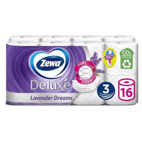 Bring a soothing, relaxing spa-feeling to your bathroom: Zewa Deluxe Lavender Dreams pampers your senses with the fresh scent of lavender, the 3-ply, lilac-coloured paper is gentle on your skin. The embossed Zewa emblem is a guarantee of our renowned quality.