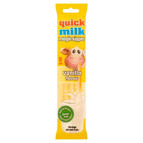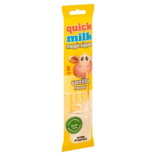 Quick Milk Magic Sipper vanilia ízű cukordrazséval töltött szívószál