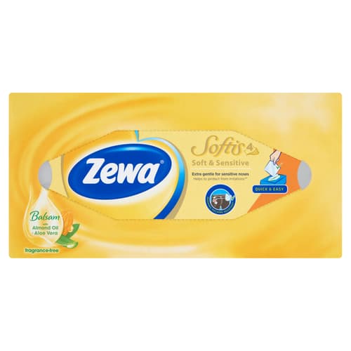 A Zewa Softis Soft&Sensitive mandulaolaj és aloe vera különleges keverékét tartalmazza. Illatanyagmentes, így allergiásoknak is segítséget nyújt. Gyengéden ápol, nem irritálja az érzékeny bőrt sem.