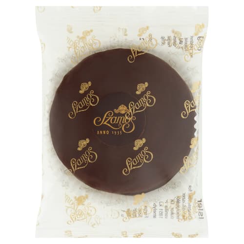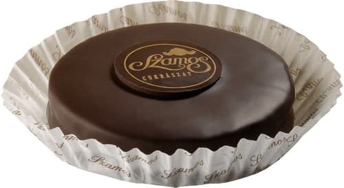 Isler tészta fekete ribizli lekvárral töltve, csokoládéval mártva, csokoládé emblémával díszítve.