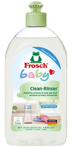 Biztosítsd babád eszközeinek ragyogó tisztaságát és biztonságát a Frosch Baby mosogatószerrel. Ez a gyengéd, hipoallergén formula hatékonyan távolítja el a makacs tej-, tápszer- és ételmaradékokat a cumisüvegekről, cumikról és játékokról. Úgy tervezték, hogy teljesen leöblíthető legyen, nem hagyva káros nyomokat. Illat- és színezékmentes, így allergiások számára is tökéletes. Bőrgyógyászatilag tesztelt, bőrsemleges pH-val, ráadásul B5 provitamint is tartalmaz a kezed védelmére. Egy 500 ml-es flakon, büszkén Németországból.
