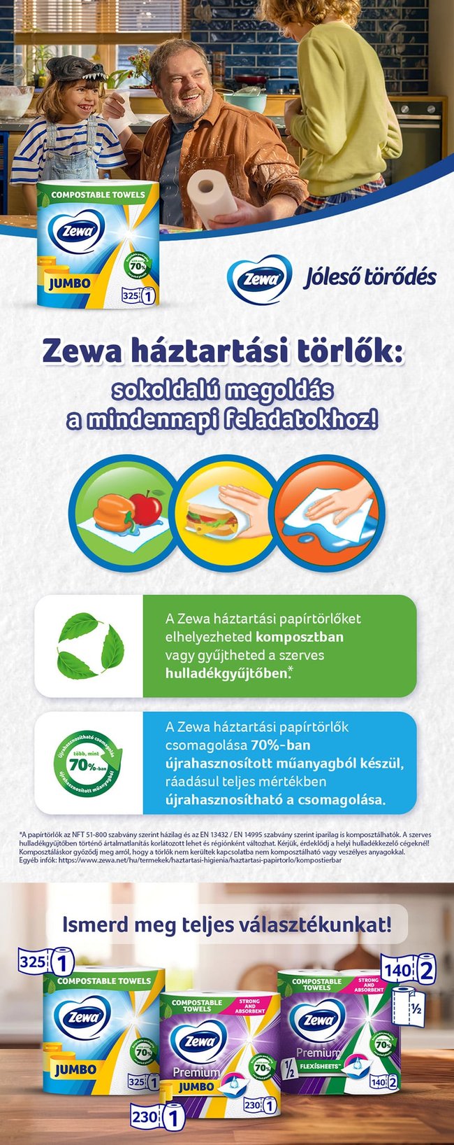 A Zewa Jumbo 2 rétegű papírtörlő egy igazi óriás a háztartásban, 325 lapos tekercsével kivételesen hosszú ideig biztosítja a praktikus tisztaságot. Ez az osztrák termék erős és kiváló nedvszívó képességű, így hatékonyan segít a mindennapi takarításban. A fehér színű törlő közepén lévő papírhenger eltávolítható, így belülről is adagolható. Ideális választás minden háztartásba, ahol fontos a megbízható minőség és a tartós használat.
