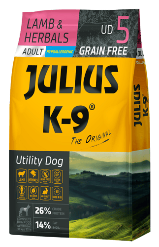 Julius-K9 Adult gabonamentes száraztáp felnőtt kutyáknak, bárány-gyógynövény