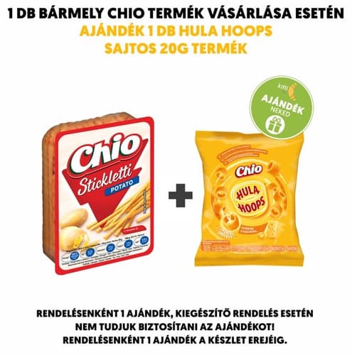 A Chio Stickletti burgonyás sós rágcsálnivaló egy 80g-os magyar termék, ami ideális választás, ha valami finomra vágysz. A Chio, mint fiatalos márka, széles sós snack kínálattal rendelkezik. Ezek az ízesített tésztából készült Sticklettik egyszerű, mégis ellenállhatatlan finomságok, melyek egy zacskóban körülbelül 3 adagot tartalmaznak.
