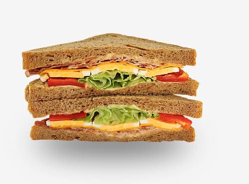 paradicsomos toast 37,7% { búzaliszt, ivóvíz, rozsliszt, élesztő, napraforgóolaj, cukor, paradicsom pehely 2,1%, étkezési só, sütőipari adalékanyag [ búzaliszt, lisztkezelő szerek /aszkorbinsav, amiláz ( búzát tartalmaz), lipáz ( búzát tartalmaz), xilanáz ( búzát tartalmaz )/]; pörkölt búzamalátaliszt, tartósítószer (kálium-szorbát)},fűszeres szendvicskrém 20,2% szendvicskrém {ivóvíz, napraforgóolaj, módosított burgonyakeményítő, mustár [ ivóvíz, mustármag, ételecet, cukor, étkezési só, fűszerek, tartósítószer (kálium-szorbát), színezék (kurkumin)], étkezési só, emulgeálószer (keményítő-nátrium-oktenil-szukcinát), édesítőszerek (aceszulfám K, aszpartám)*, sűrítőanyagok (xantángumi, guargumi), tartósítószer (kálium-szorbát), étkezési sav (citromsav), citromkivonat, színezék (karotinok) ,feketebors}*Fenilalanin-forrást tartalmaz, főtt tojás 13,9%.{tojás, ivóvíz, étkezési só, étkezzési sav ( citromsav )},sült bacon 10,1% { császárszalonna 98%, étkezési só, antioxidáns ( nátrium-aszkorbát ), tartósítószer( nátrium-nitrit), bükkfafüst },vörös cheddar sajt 5,6% { tej, étkezési só, tejsavbaktérium- kultúra ( tejet tartalmaz ), mikrobiológiai oltóenzim, színezék ( karotinok )},kápia paprika 5,1%, jégsaláta 4,6%.
