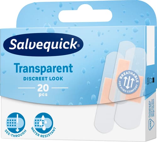 Transparent and flexible wound dressing. Breathable, water and dirt resistant.