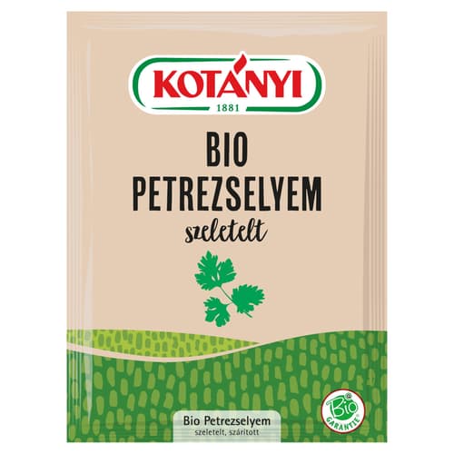 Kotányi BIO Petrezselyem, A KOTÁNYI Bio fűszerek válogatott mezőgazdasági régiókból és ellenőrzés alatt álló ökológiai gazdálkodásokból származnak. Így tökéletesen kifejezésre jutnak a fűszerek eredeti illat- és ízharmóniái és garantálják a természet igazi ízét. Az államilag is elismert "Austria Bio Garantie" és Biokontroll Hungária Nonprofit Kft. tanúsítványai (HU-ÖKO-01) garantálják a folyamatosan ellenőrzött ökológiai minőséget.