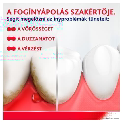 Keresse fel fogorvosát, ha a tünetei nem enyhülnek vagy ha gyermekénél fogínyvérzést tapasztal. Ha irritációt észlel, akkor hagyja abba a termék használatát. Nem alkalmazható 12 évnél fiatalabb gyermekek esetén, kivéve fogorvos vagy orvos javaslatára. Gyermekektől elzárva tartandó. Ne használja a terméket, ha a csomagolás végein lévő ragasztás hiányzik és a doboz nyitva van. Minden váratlan eseményt vagy mellékhatást jelentsen a gyártónak, az illetékes hatóságnak és gyógyszerészének vagy fogorvosának.