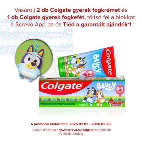 Segíts gyermekednek, hogy egészséges fogmosási rutint alakítson ki a Colgate Kids Bluey 0-5 éveseknek szánt fogkrémmel! Fogkrémmel a fogmosás minden alkalommal vidám pillanat lesz, hisz Bluey és Bingo is részt vesz benne.