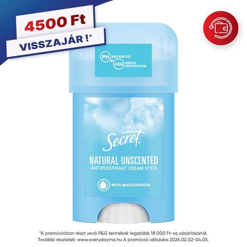 - Feltartóztathatatlan frissesség egész napon át a Secret Natural Illatmentes izzadásgátló krémstift gazdag és megnyugtató illatával