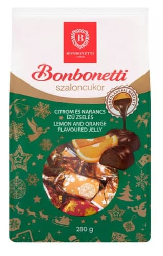 Bonbonetti Dark chocolate-dipped lemon and orange flavoured jelly Christmas candy 300g.