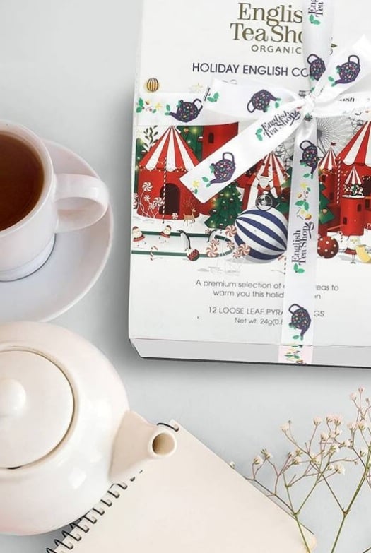 English Tea Shop Karácsonyi fehér "British toys" selyempiramis filteres BIO teaválogatás