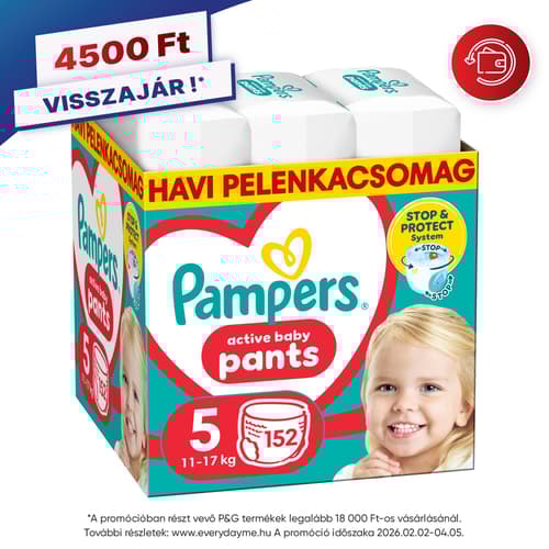 Pampers Active Baby Pants Bugyipelenka, Havi Pelenkacsomag, Méret: 5 (11-17 kg) 152 db
