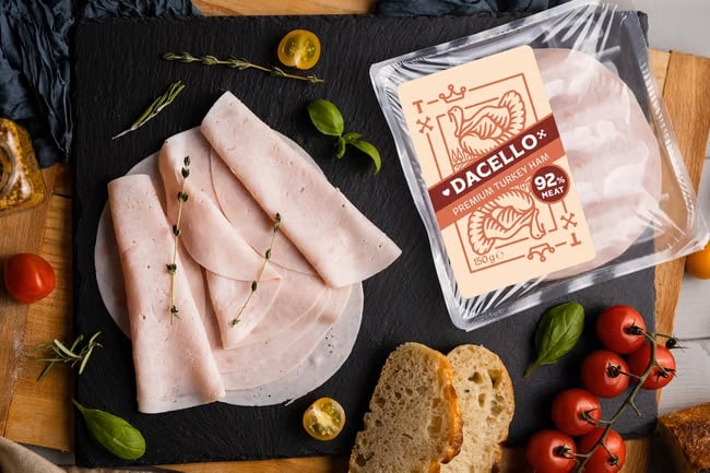 Nincs még egy olyan sonka, mint ez. A Dacello pulykasonkával az ember első látásra szerelembe esik. Nemcsak maga az íze miatt, mindenekelőtt a 92%-os pulykamellből készült finomság fogja meggyőz arról, hogy ennek a sonkának egyszerűen a hűtőszekrényedben a helye. Mi igent mondunk a Dacello sonkára!