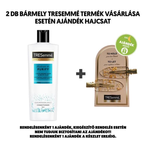 Zsírtól mentes, gyönyörűen ápolt hajat szeretnél? A Tresemmé Purify & Hydrate sampon használata után ápold tincseid a hialuronsavat és fehér agyagot tartalmazó Purify & Hydrate hajbalzsammal a könnyen kifésülhető és puha tapintású hajért.