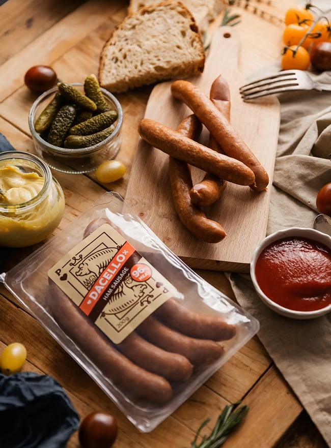 Nem olyan virsli, mint a többi. A Dacello virslik olyan illatúak, hogy egyszerűen megharapnád (ezt tesszük mi is írás közben). Emellett válogatott sertéshúsból készült kolbászaink remek partnerei a húsimádóknak. Bükkfából származó füst fedi őket. Ráadásul a 96%-os hústartalom miatt azonnal a hűtőszekrényedbe kívánod. Több hús már egyszerűen nem is fért bele. Mi igent mondunk a Dacello virslinek!