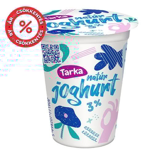 Tarka 3% (m/m) zsírtartalmú élőflórás natúr joghurt, homogénezett.