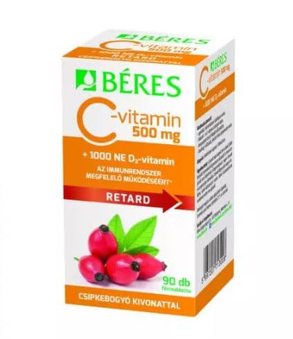 Béres C-vitamin 500 mg Retard filmtabletta csipkebogyó kivonattal + 1000 NE D3-vitamin 90 db