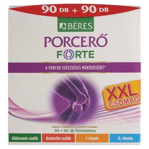 Béres Porcerő Forte filmtabletta komplex étrend-kiegészítő készítmény glükozamin-szulfáttal, kondroitin-szulfáttal, valamint C- és D3-vitaminnal.